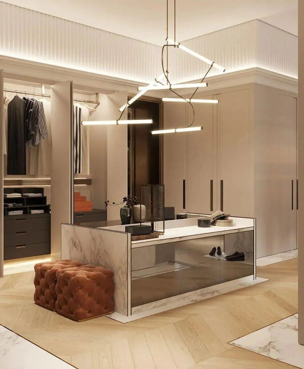 衣帽间之于家,是高贵与优雅、秩序与品质的共同体。它承载着或优雅或甜美的浪漫梦想,记载着家人亦温馨亦包容的细节,它让你以小见大,归置着一家人整洁有序的美好。