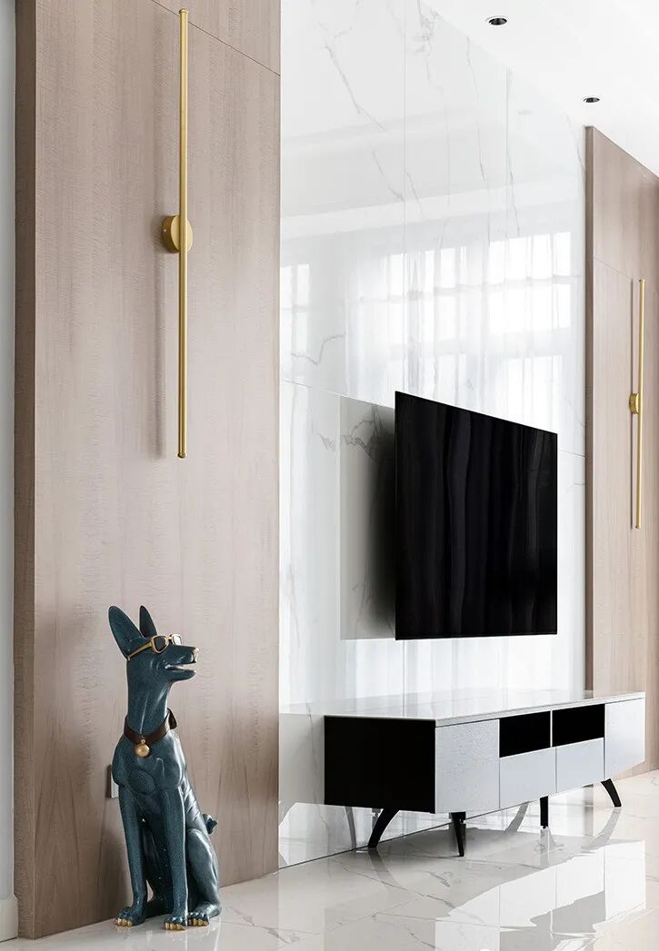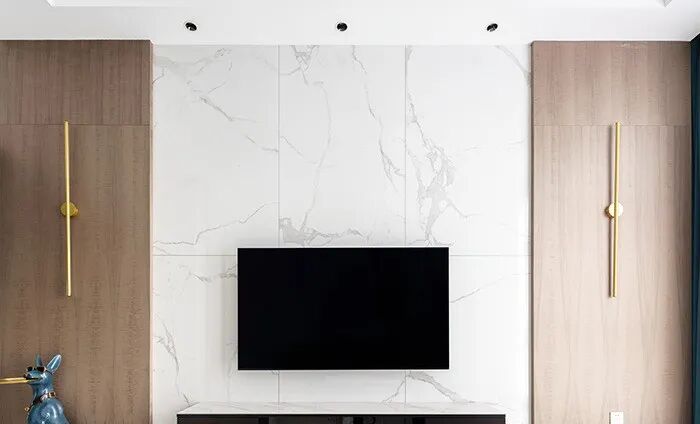 ▲电视墙加入对称的木饰面,效果也更加高级简约。