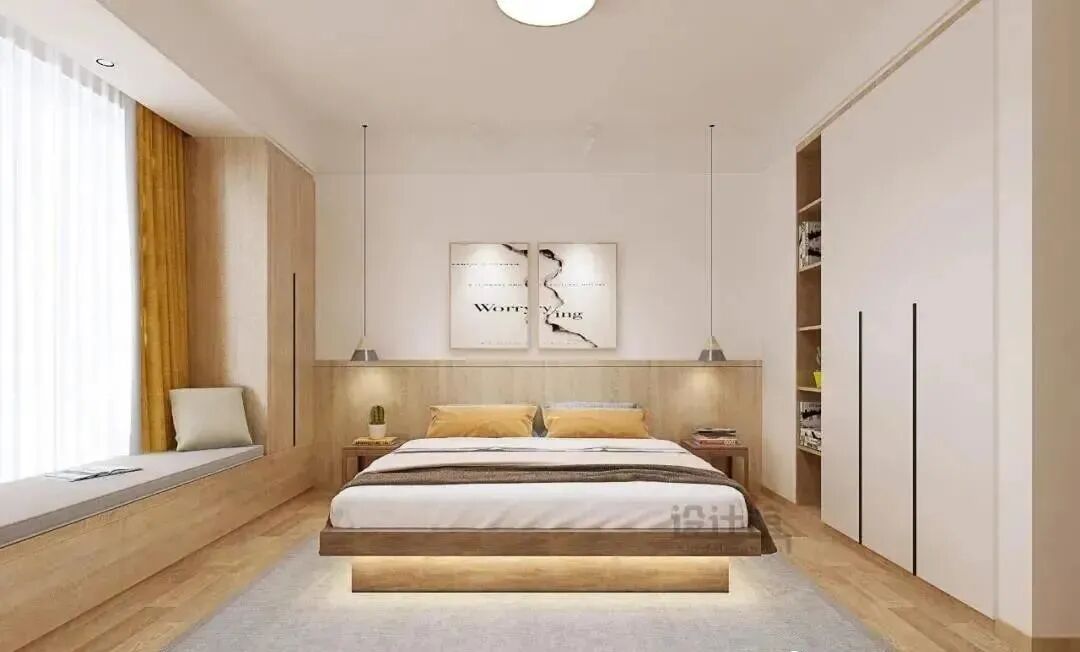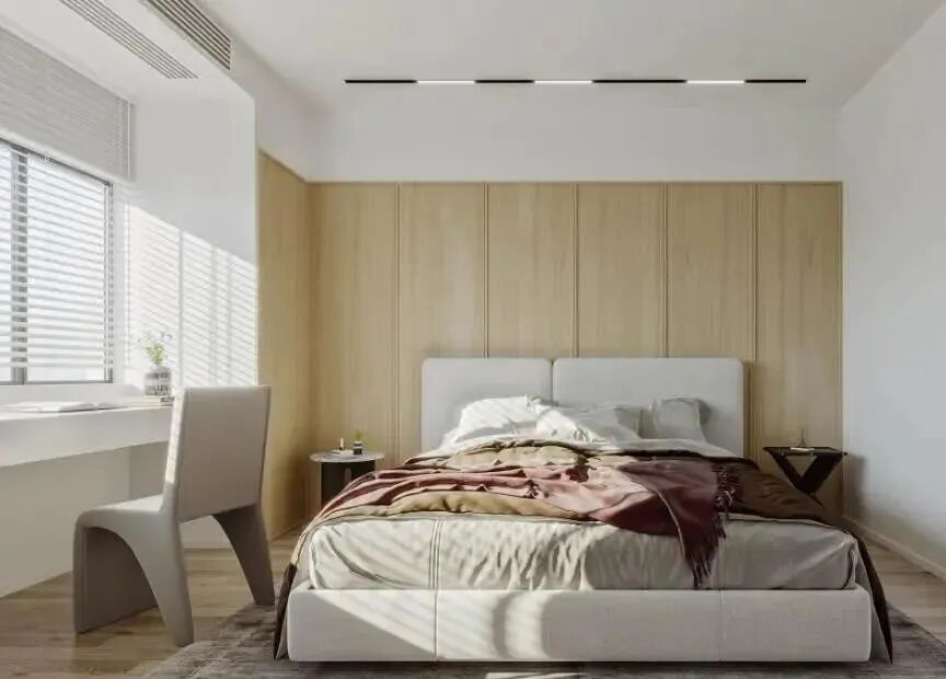 卧室是睡眠休息的空间,而自然浅淡的木质感,也可以增加卧室空间的舒适与轻松气息。