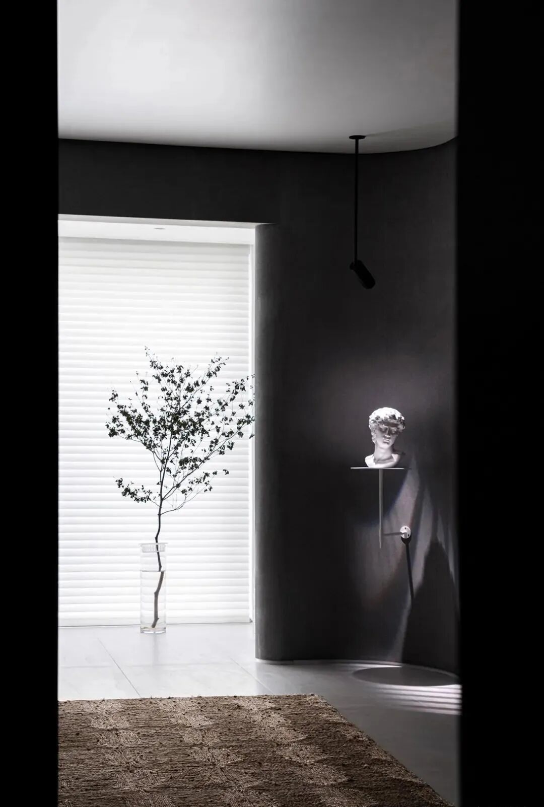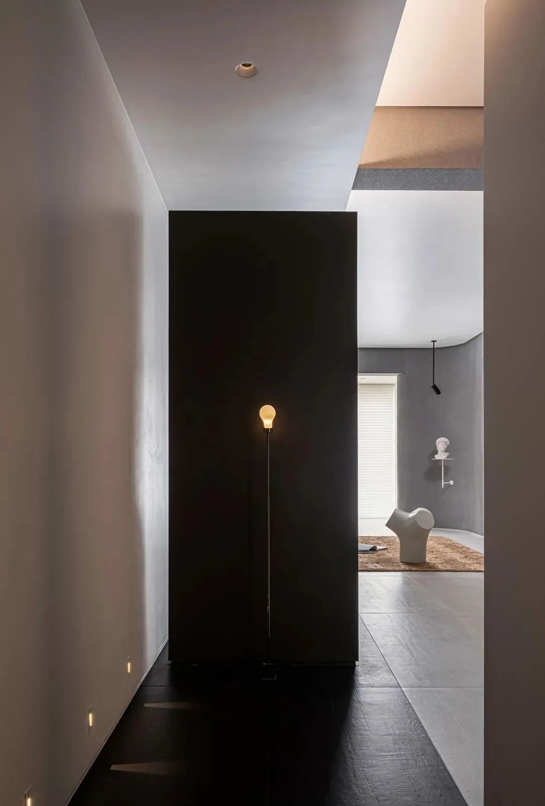 ▲ 入户玄关的设计灵感源于Richard Serra的极简主义雕塑,灯光的设计参考艺术场馆的氛围布置