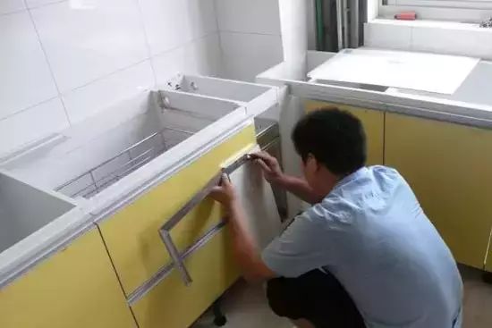 吊顶结束后,可以约橱柜上门安装了。同时安装的还有水槽(可以不包括上下水件)和煤气灶,橱柜安装之前最好协调物业把煤气通了,因为煤气灶装好之后需要试气。