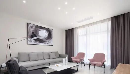 想省装修钱,就不要做复杂造型的吊顶,如果你家层高低于3.2m,那更不能做了!家里不吊顶后有些人会一时间难以适应,总觉得设计太单调,不显精致。其实你可以在墙面与天花交界处选用带有空槽的石膏线用来提升顶面质感,石膏线外侧的精美造型可以起到很好的装饰作用。