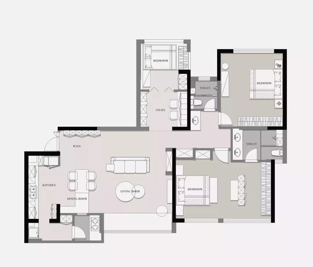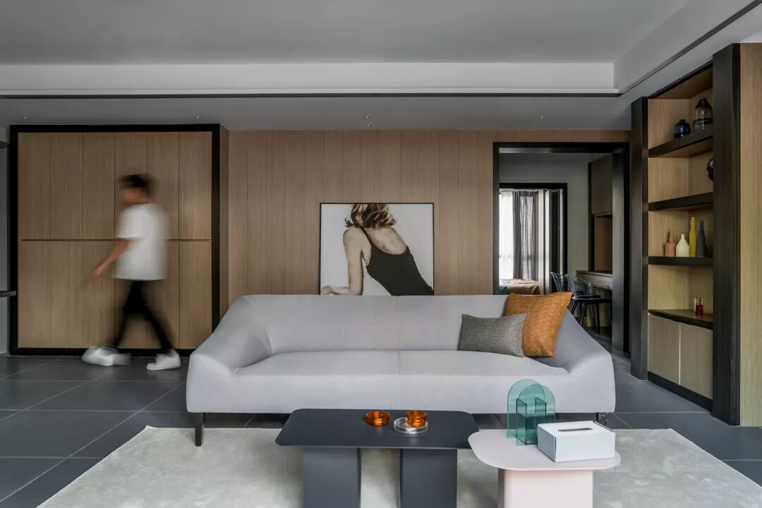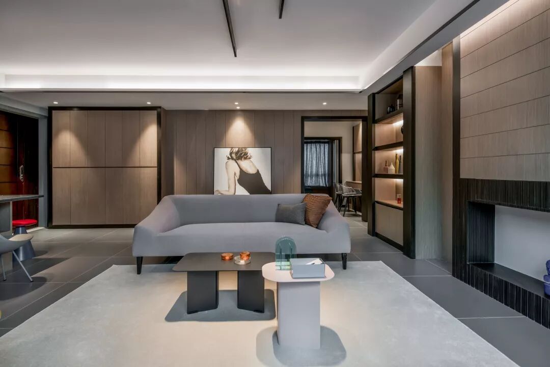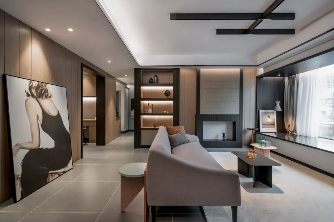 忠极装饰:早上好,今天来分享一点不一样感觉的129平现代风格新房装修案例。横厅+飘窗+射灯,用现在流行的话来说就是绝绝子。非常经典大气又时尚的案例,一起往下看吧。